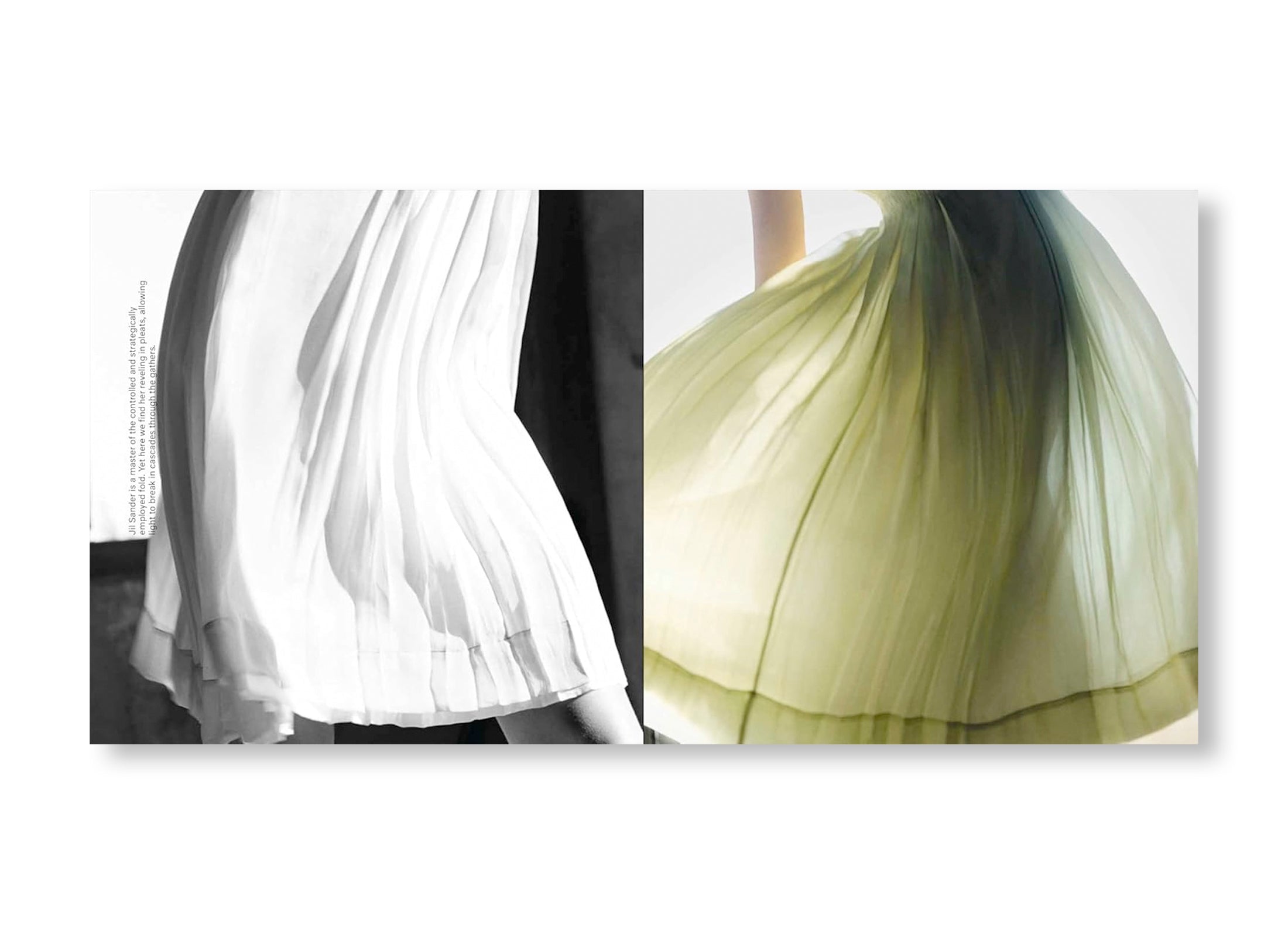 豊富なアーカイブ資料と、公に出ることを好まないことで知られる作者の人生を垣間見ることができる本書は、いかにして1960年代にそのキャリアをスタートし、流行に動じず差別のないデザイナーとしての地位を急速に確立したかも物語る。1980年代後半から1990年代にかけて、ようやく世界が「ジル サンダー」に追いついた時、その名はファッション界全体で最も尊ばれるもののひとつとなった。作者にとって核となる原則を守ることが自身のブランドで成功する鍵であった。本書では、化粧品の世界への進出や、後に「ユニクロ(UNIQLO)」とパートナーシップを結び特別ライン「プラスJ(+J)」を立ち上げたことなども紹介。さらに、さまざまな国で展開されている旗艦店の建造とインテリアデザインにおける一流建築家との協働にも焦点が当てられている。そのキャリアのあらゆる側面がこの魅力溢れる物語に織り込まれており、結果「ジル サンダー」の名がエレガントに表現され、誠実さと気骨、豪華なパッケージと時代を超越したストーリーが描かれている。