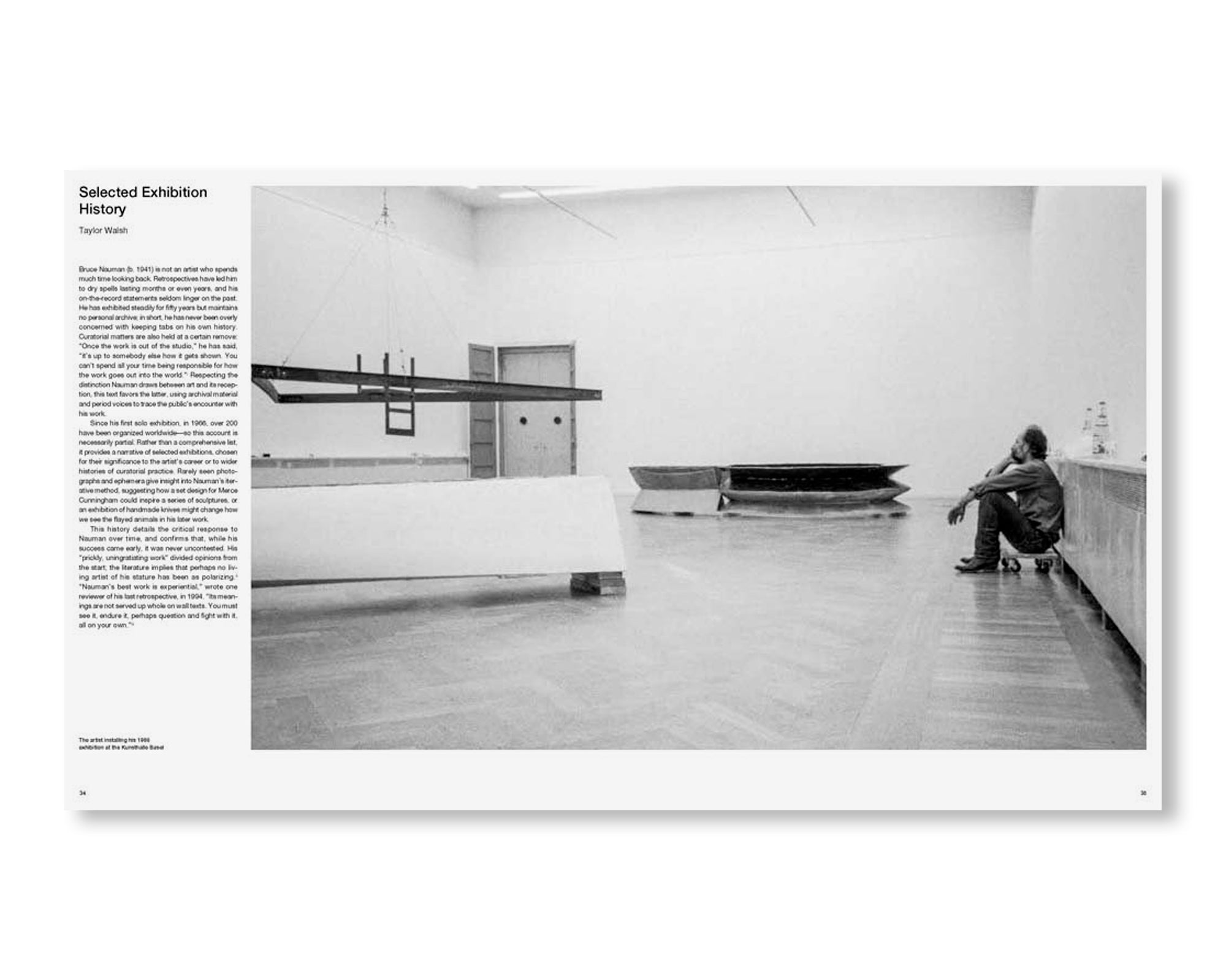 アメリカ人アーティスト、ブルース・ナウマン(Bruce Nauman)の作品集。2018年にバーゼルの「シャウラガー・ローレンツ財団美術館(Schaulager)」、2019年に「ニューヨーク近代美術館(MoMA)」で開催された巡回展覧会に伴い刊行された。本書は、50年に及ぶ作者のキャリアを、豊富な図版を用いて包括的に紹介しする。作者の作品は、ダイレクトかつ対立的であり、しばしば単純な修練や批判的な自問といったような性質を持つ。作者は、ドローイング、版画、映像、彫刻、サウンド、言語、パフォーマンス、複雑なインスタレーションなどを通じ、身体、時間、空間、動き、建築の現象学的・心理学的経験を考察する根本的な問いを一貫して探求している。本展では、作者が持つ建築模型への関心や色彩の意義など、これまでこの作品群への批評で軽視されてきたシリーズやテーマに、幅広い執筆陣が目を向けている。展覧会のコンセプトに関する広範な紹介に加え、特定の反復するアイデアや媒体に焦点を当てた17のショートエッセイも収録。また、貴重な画像群や未発表の図版を多数掲載した展覧会年譜も見ることができる。