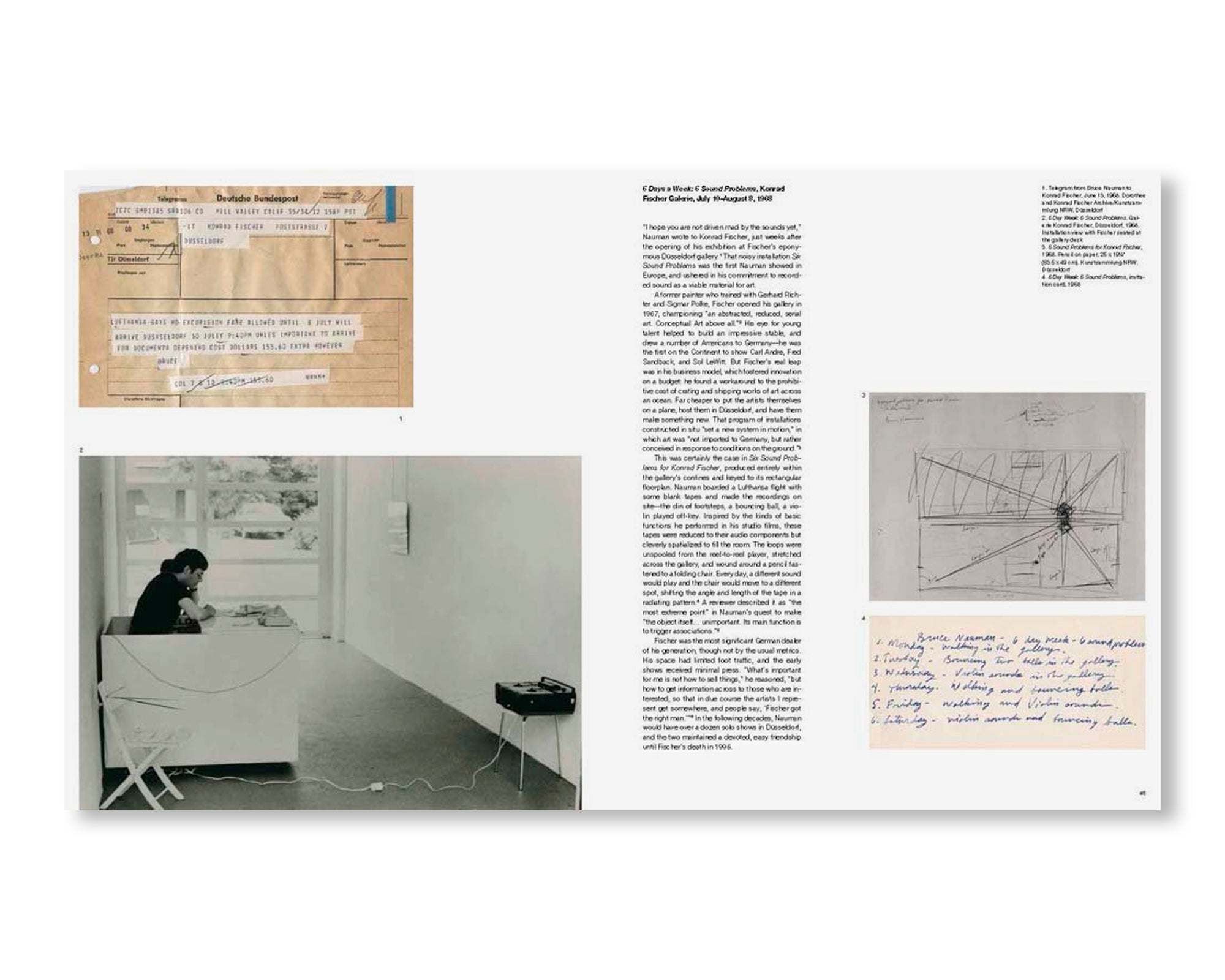 The exhibition catalog “Bruce Nauman: Disappearing Acts” accompanies the retrospective of the same name at Schaulager, which was conceived in cooperation with the Museum of Modern Art, New York. The richly illustrated book offers a comprehensive overview of Nauman’s career spanning more than fifty years of artistic activity in a diverse range of media. Nauman’s works are very direct and confrontational and often have the character of simple exercises or critical self-interrogations. Whether through drawing, print, video, sculpture, sound or language, performance or complex installations—the artist consistently explores fundamental questions that examine the phenomenological and psychological experience of body, time, space, movement and architecture. A wide selection of authors turn their attention to series and themes that have previously been neglected in the critical examination of this body of work, such as Nauman’s interest in architectural models or the significance of color. In addition to an extensive introduction on the exhibition concept, 17 shorter essays concentrate on specific recurring ideas or media. An illustrated selected exhibition history featuring numerous rare or previously unpublished images completes the volume.