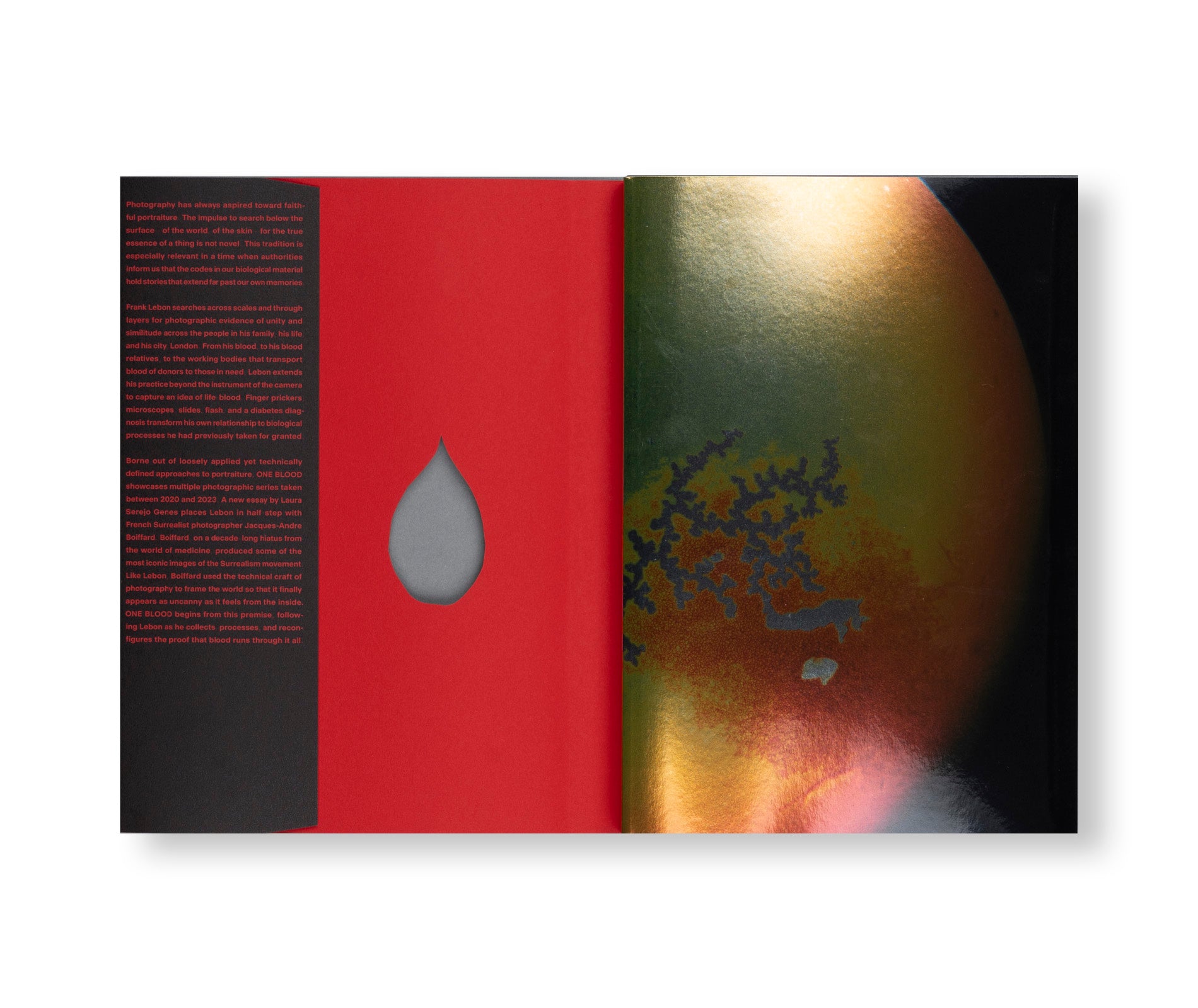 Introducing ONE BLOOD, an artist book by Frank Lebon, published by Little Big Man Books and offset printed in Japan. ONE BLOOD is the first solo artist book by photographer Frank Lebon. Borne out of loosely applied yet technically defined approaches to portraiture, ONE BLOOD showcases multiple photographic series taken between 2020 and 2023. The practice of photographing loved ones, familiar territory for Frank Lebon, is taken to its extreme both in process and form. In the dark times of 2020, Frank conceived of a project that had him seeking out family and friends to prick their fingers and collect samples of their blood. These intimate sessions to retrieve blood droplets that would be smeared on small glass slides were paired with slightly more traditional portraits, for which Frank would ask his subjects (blood donors) to place their hands over his flash, casting a unique flood of red light upon their own faces. “The spark that ignited the idea was originally the spark of a flash, my fingers pressed up against it, the light would shine through my finger and project the red of my blood upon my subject. As with almost anything noteworthy I have ever created, it was birthed from a mistake; my fingers found themselves there as they had nowhere else to go.” In ONE BLOOD Frank Lebon searches across scales and through layers for photographic evidence of unity and similitude across the people in his family, his life, and his city, London. From his blood, to his blood relatives, to the working bodies that transport blood of donors to those in need, Lebon extends his practice beyond the instrument of the camera to capture an idea of life-blood. Finger prickers, microscopes, slides, flash, and an unexpected diabetes diagnosis transform his own relationship to biological processes he had previously taken for granted. In addition to the beautiful photographic series showcased in 4-color offset printing and special glosses, an essay by Laura Serejo Genes places Lebon in half-step with French Surrealist photographer Jacques-André Boiffard. Boiffard, on a decade-long hiatus from the world of medicine, produced some of the most iconic images of the Surrealism movement. Like Lebon, Boiffard used the technical craft of photography to frame the world so that it finally appears as uncanny as it feels from the inside. ONE BLOOD begins from this premise, following Lebon as he collects, processes, and reconfigures the proof that blood runs through it all.