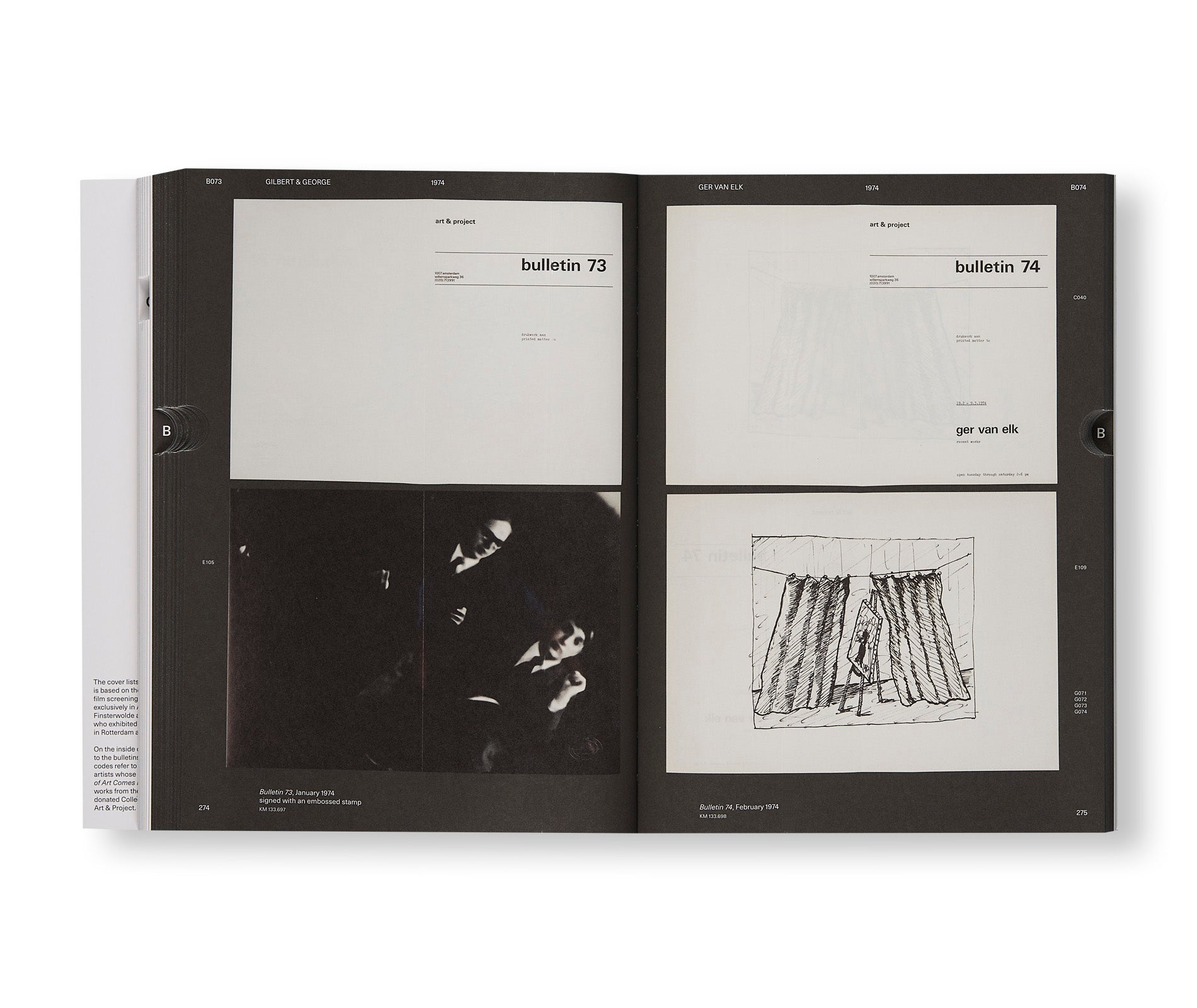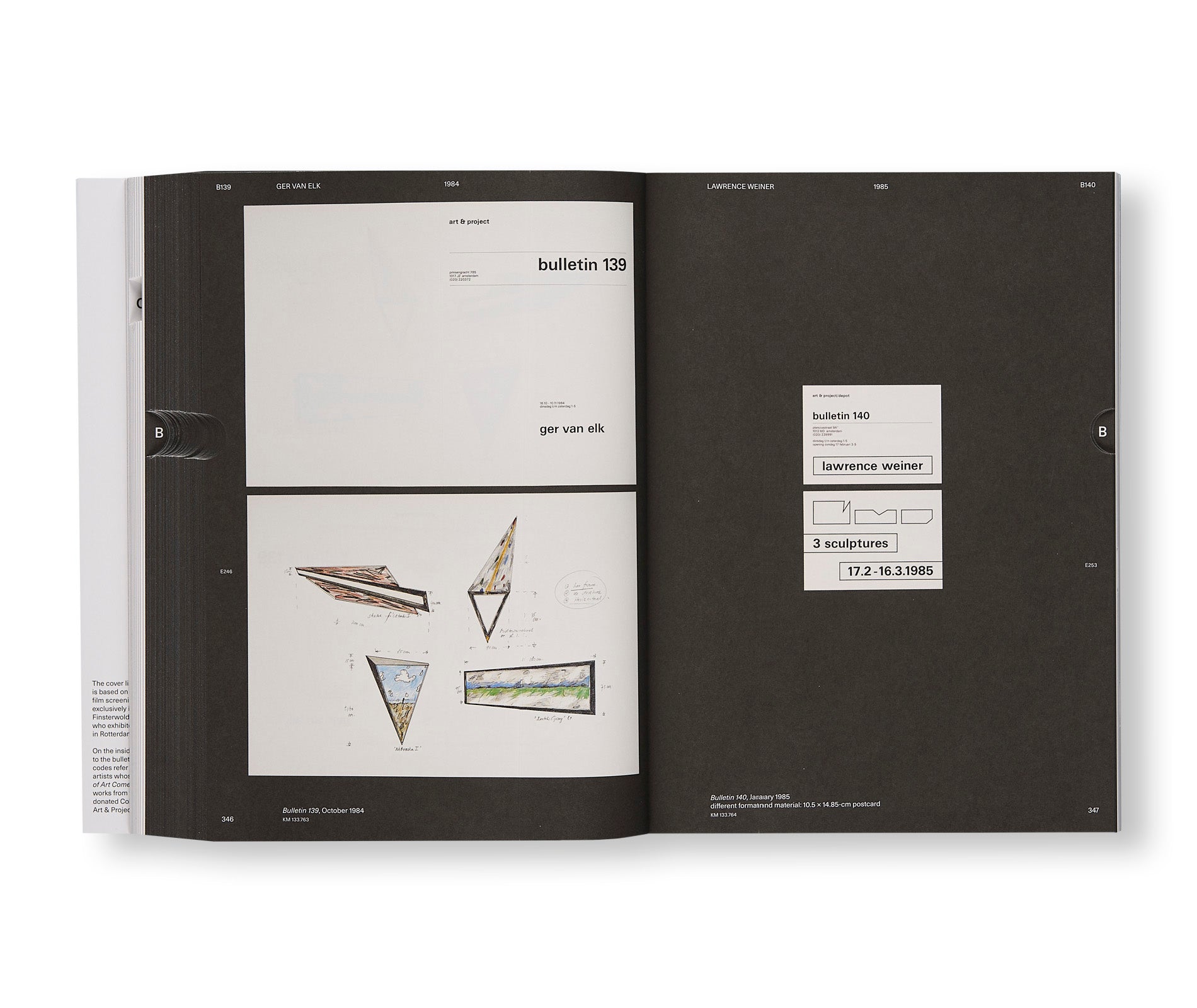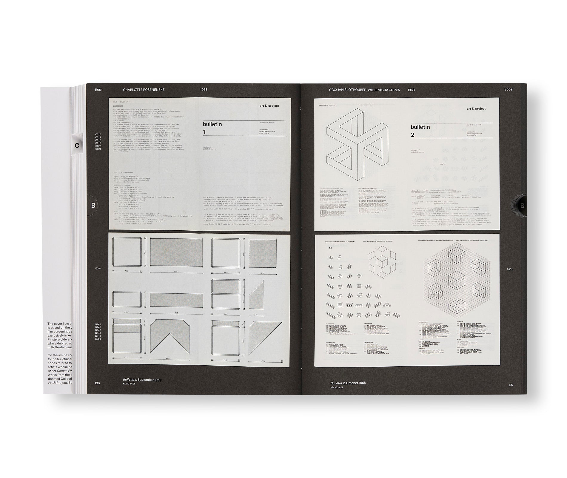 The Amsterdam gallery Art & Project (1968–2001) was pivotal to the evolution of contemporary art in the Netherlands and beyond. It presented a pioneering programme of work by national and international artists, including Charlotte Posenenske, Jan Dibbets, Gilbert & George, Stanley Brouwn, and Sol LeWitt. To advertise its shows, more than 150 bulletins were published by the gallery, which quickly became an experimental medium, incorporating the conceptual ideas of the artists and even functioning as works of art themselves. Based on extensive research and previously unpublished visual material, this large volume documents the history and influence of the Art & Project gallery.