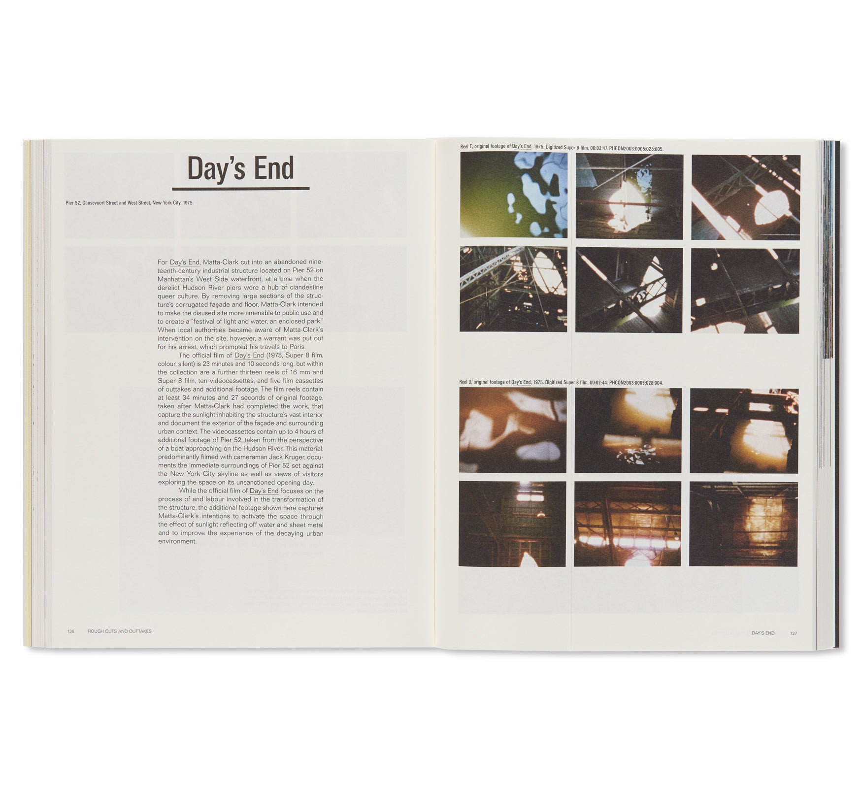 アメリカ人アーティスト、ゴードン・マッタ=クラーク(Gordon Matta-Clark)の作品集。カナダ建築センター(CCA)に所蔵されている作者の包括的な作品コレクションを様々な視点から読み解く一冊。美術評論家でありキュレーターのヤン・シャテニエ(Yann Chateigné)は、作者の所蔵作品に対し、その思考の痕跡、たとえば描かれたものや書かれた文章などを収集するための「枠」として、錬金術から精神分析まで、様々な研究領域において再編成する。キュレーターであり映像作家のヒラ・ペレグ(Hila Peleg)は、廃棄されたフィルムの映像を長い時間をかけて再構成し、記録と復元という概念に挑む。キュレーターのキティ・スコット(Kitty Scott)は、何百枚にもわたる旅の写真から作者の周囲の世界を視覚的なパノラマで構築する。2019年6月6日から2020年8月2日まで同施設で開催された展覧会に伴い刊行。