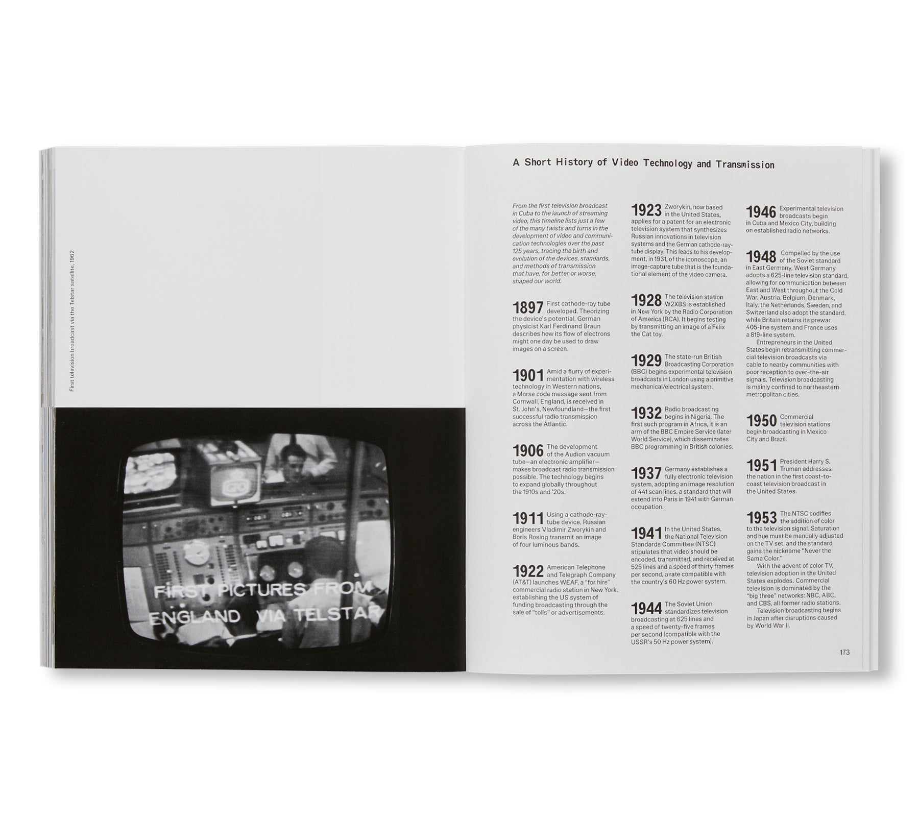 2023年5月から8月にかけて「ニューヨーク近代美術館(MoMA)」で約30年ぶりに映像芸術を主題として開催された大規模な展覧会に伴い刊行された作品集。展覧会では同美術館のコレクション作品を取り上げており、新たなコミュニケーションのネットワークや民主的取り組み、一般の参加を生み出すことを望み、あるいは商業ないし国家による情報、ヴィジョンや真実そのものの支配に対抗したアーティストたちがいかに映像作品の未来を守り、問うてきたかに注目する。美術史・哲学・古典を専門とするイナ・ブロム(Ina Blom)、アーティストであり評論家、キュレーターのアリア・ディーン(Aria Dean)、美術史家のデビッド・ジョセリット(David Joselit)とパメラ・M・リー(Pamela M. Lee)、アーティストのグレン・ライゴン(Glenn Ligon)やコンピュータサイエンスを専門とする研究者ラヴィ・サンダラム(Ravi Sundaram)など錚々たる学者やアーティスト陣のエッセイにより、映像作品の実に多種多様なる形態や文脈、世界への展開力に光を当てる。映像が人生の全ての局面に浸透した現代において、時代を理解するためのマニュアルとなる一冊である。
