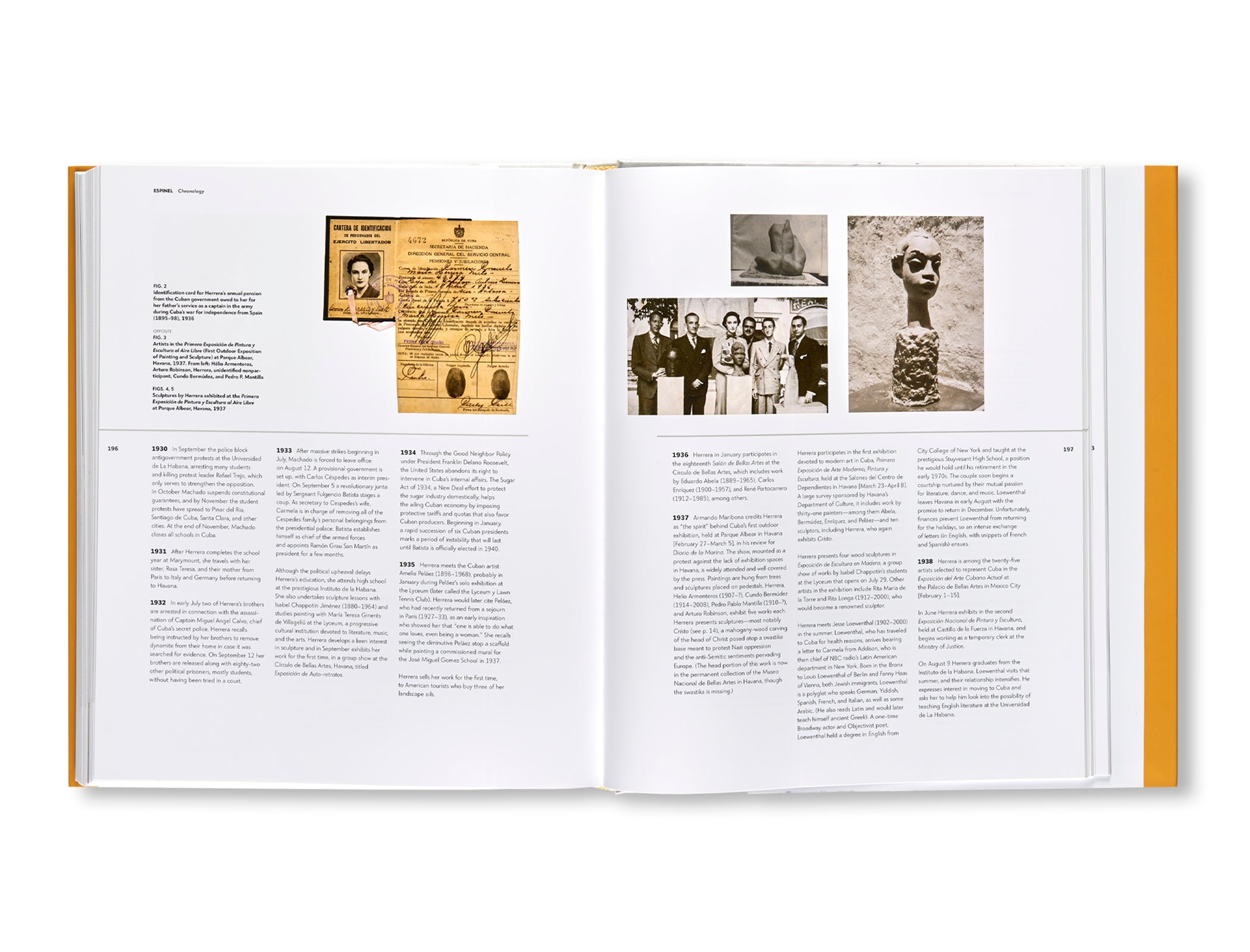 ニューヨークを拠点に活動するキューバ系アメリカ人アーティスト、カルメン・ヘレーラ(Carmen Herrera)の作品集。作者の人生と作品を紹介している一冊。1915年にキューバで生まれ、70年以上に渡って絵を描き続けた作者は、近年になってようやく国際的な高い評価と注目を浴びるようになった。ハバナ、パリ、ニューヨークで活躍した作者の1948年から78年までの初期の作品が初めてまとめられている。キューバ時代の初期の習作、戦後パリで開催された抽象主義美術の展覧会「サロン・デ・レアリテ・ヌーベル」に参加した時のこと、ニューヨークで生み出した画期的な作品などを取り上げ、ラテンアメリカの前衛芸術という広範な文脈の中で作者の作品を読み解いた幾つものエッセイを同時収録。その内の1つでダナ・ミラー(Dana Miller)は、ハードエッジ絵画を代表的とするスタイルを見出し、磨き上げていった1950年代から1970年代のニューヨーク時代の作品について考察した。この物語をさらに豊かなものとしているのが、作者所蔵の個人的な家族写真である。自身の人生とアーティストとしてのキャリア全体を概観する年代記にも、実生活を垣間見ることができる写真が添えられている。80点以上の作品をカラーで紹介した本書は、これまでの作者の作品集の中でも最も充実した内容を誇る。寄稿者は、ニューヨークのホイットニー美術館リチャード・デ・マルティーニ・ファミリー・キュレーター兼コレクションディレクターであるダナ・ミラー、美術史家でソルボンヌ(パリ第4)大学名誉教授、元グルノーブル美術館館長、元パリ・オルセー美術館館長でもあるセルジュ・ルモワンヌ(Serge Lemoine)、キューバのハバナを拠点に活動するキュレーター、評論家、美術史家、作家であるジェラルド・モスケラ(Gerardo Mosquera)、ニューヨーク大学美術研究所および美術史学科のヘレン・グールド・シェパード教授のエドワード・J・サリバン(Edward J. Sullivan)、ニューヨークを拠点に活動するインディペンデント・キュレーター、評論家であるモニカ・エスピネル(Mónica Espinel)。