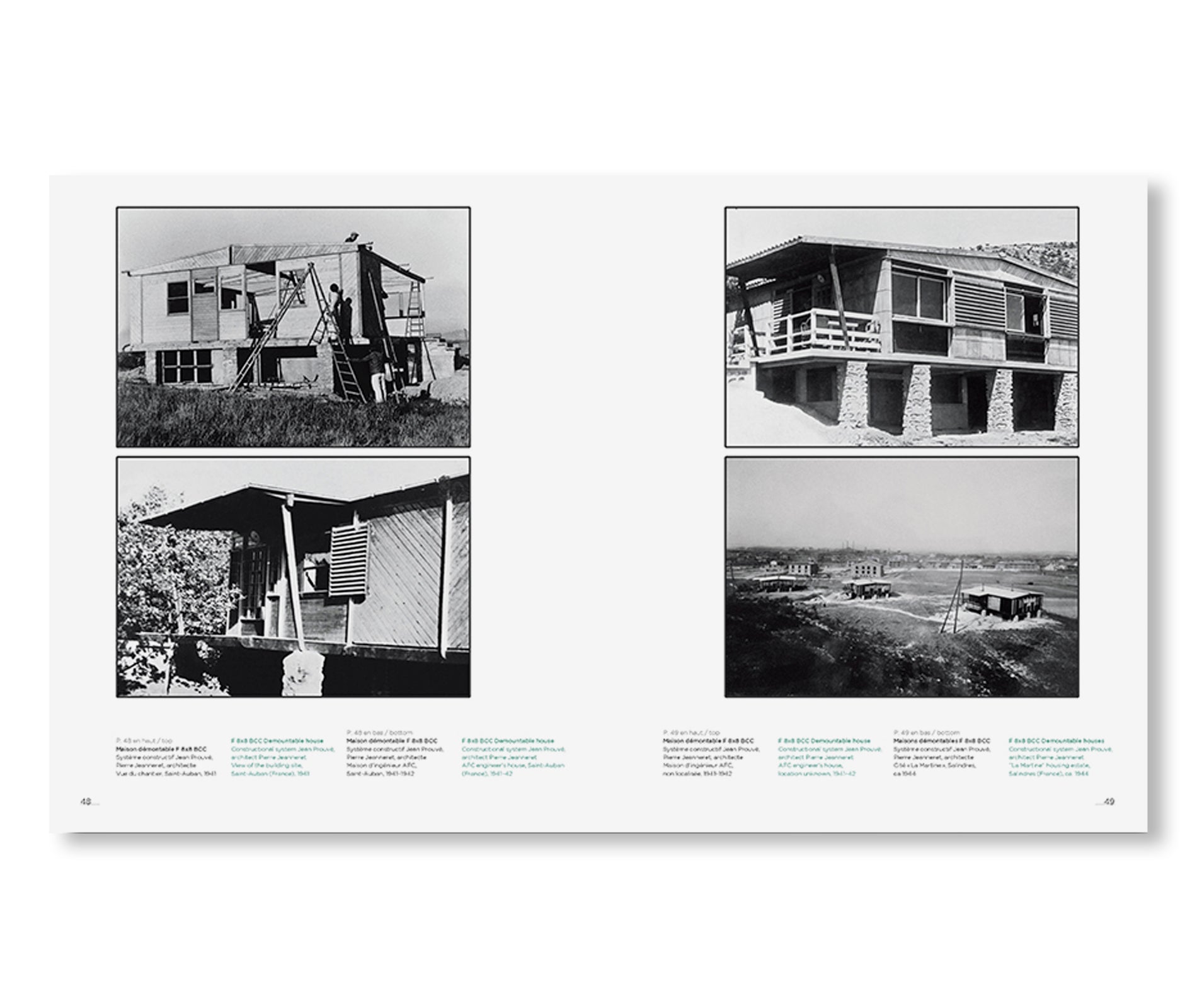 作者は、新たな建築素材の探求や移動式の椅子やプレハブ建築など、新技術を開発した先駆者として建築・デザインに多大な影響を与えた。本書は、戦後復興再建のために考案された「F 8x8 BCC組立式住宅」を収録したものである。作者とスイス人建築家、ピエール・ジャンヌレ(Pierre Jeanneret)の共同設計「BCC組立住宅」は、1939年に制作開始したプロジェクトの一環であり、これらは作者が1938年に開発したポルティーク型の構法を中心としたものである。1941年から1943年の第二次世界大戦中の極限状態で、この小さな木造組立住宅を完成させたのはわずかであるが、制約された状況に適応する2人の並外れた能力を示す作例だと言える。鉄の入手が困難となった戦時中、作者とジャンヌレは解決策に挑み、木材を使用することで、快適でありながら、一時的である、高品質な住宅を制作することができたのである。パリの「パトリック・セガン・ギャラリー(Galerie Patrick Seguin)」で開催された展覧会で組み立てられた実物大の「F 8x8 BCC組立式住宅」の展示写真、図面、スケッチ、当時の組立写真など、貴重な資料とともに本プロジェクトを紹介している。